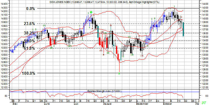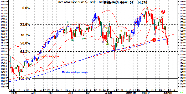 The Dow Jones 30 Index has fallen 50% from it's rally high of 14,279